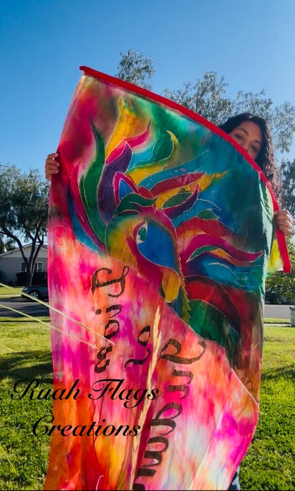 Each flag is created with a prayerful process, asking God to guide every step from start to finish. At Ruah Flags Creations we embrace the small imperfections that may come during the dyeing process, as it is in those small imperfections that make one set of flags unique from the other! This imbues each flag with a unique spiritual and personal quality.