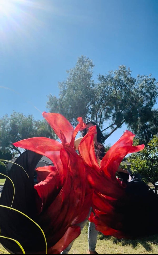 Flags have been sown with grosgrain ribbon. Colors represent igniting flames that purify and sanctify us by the power of the Holy Spirit!