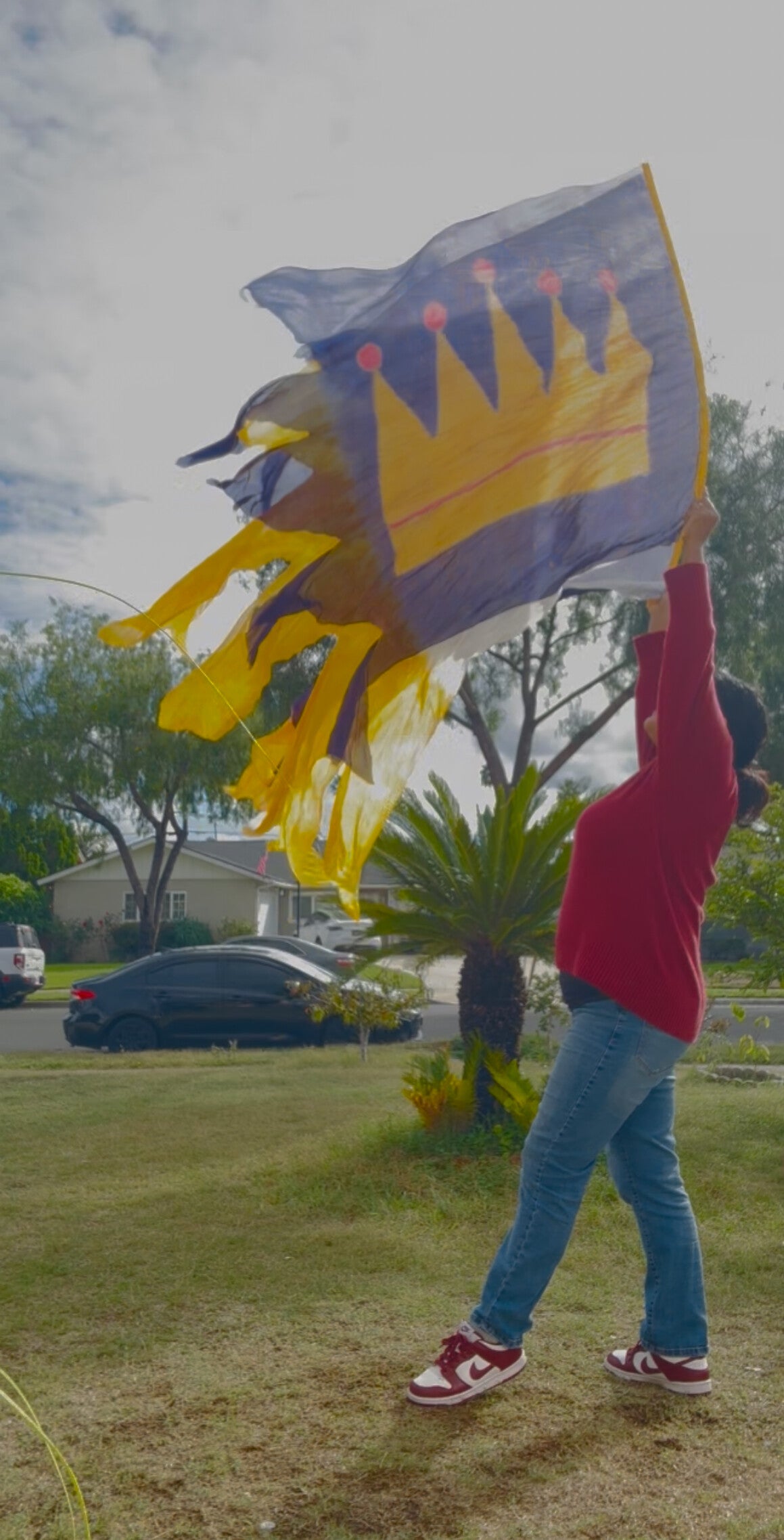First Layer: A gold crown with red that symbolizes the divine power of Jesus and how he shed his blood on the cross, followed by a purple background symbolizing His majesty!
